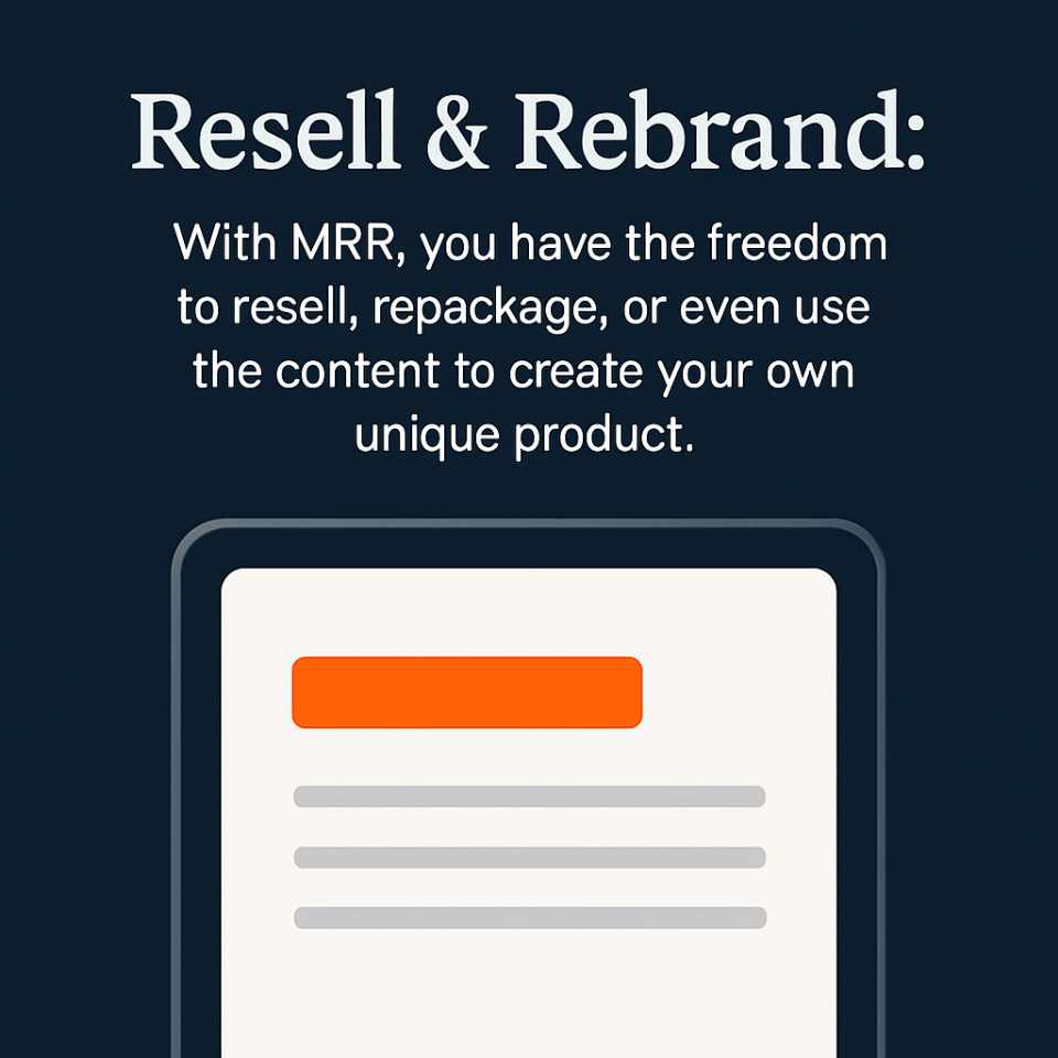 • Full Resell & Rebrand Rights: With MRR, you can sell, repackage, or transform the content into new digital products.